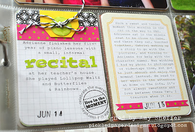 I love seeing the nose-holding and her "all-elbows-and-knees" entry in the third photo. Today, less than two months later, the girl in these photos has been replaced by a much more comfortable, much more graceful, much more competent swimmer. And that observation is fresh fuel for my whole Project Life album (which I'll admit has faltered these last two weeks). I can't wait to have this whole year to look back on next year and the year after that and the year after that. Kind of reminds me of the saying, "the days are long but the years are short." Project Life is really helping me pay more attention to the days.