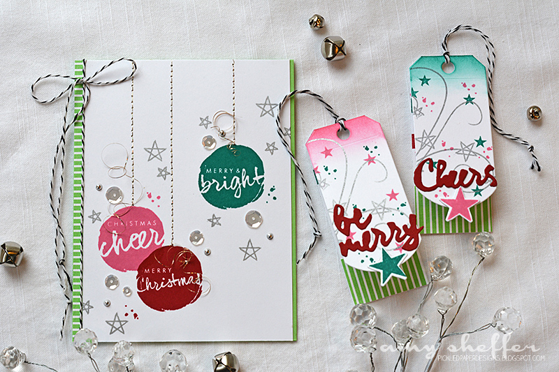 I often reach the end of a Papertrey release with piles of ideas and extra projects that aren't quite complete. Today, I'm sharing two cards in the same colors and style as this card and these tags that I posted during the October release countdown.