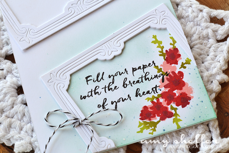 I just love the soft look of those sign die-cuts with the white embossing and ink blending! Such pretty scrollwork on that stamp!
